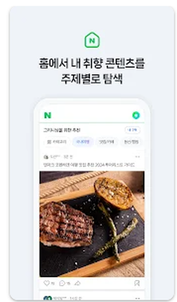 모바일에 최적화된 다양하고 풍부한 정보! 매일 새로워지는 네이버앱을 만나보세요. 네이버앱은 콘텐츠 유형에 따라 5개의 공간을 제공합니다. 내가 좋아하는 건 주제별로 ‘홈피드’에서,